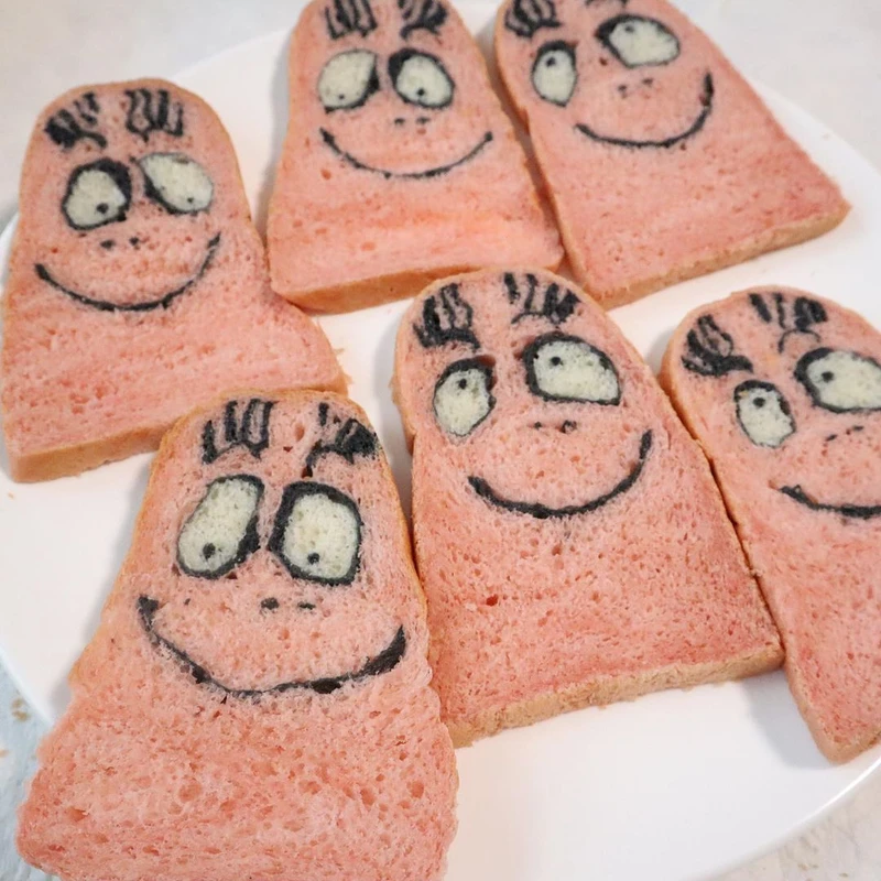 外表看起來歪七扭八的模樣,完全無法想像切下去模樣居然這麼可愛,因為手工自製的麵包,雖然不是神還原卡通角色,但這個反差萌實在是太厲害啦!