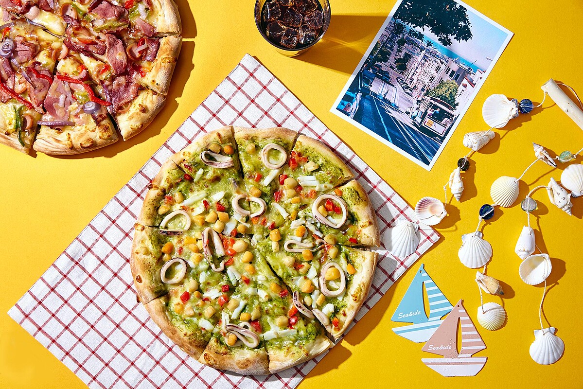 期間限定的「青醬黃金貝」比薩,採用黃金貝、魷魚等鮮嫩海鮮,配上香濃起司,與清新爽口的青醬組合簡直絕配,是非常適合炎炎夏日的海洋風美食最佳選擇。「法式燻鴨」比薩則以肉質肥美多汁的櫻桃鴨肉,搭配法蘭克福香腸,獨特的煙燻風味,一開盒香味就撲鼻而來,入口後更是讓人著迷不已。