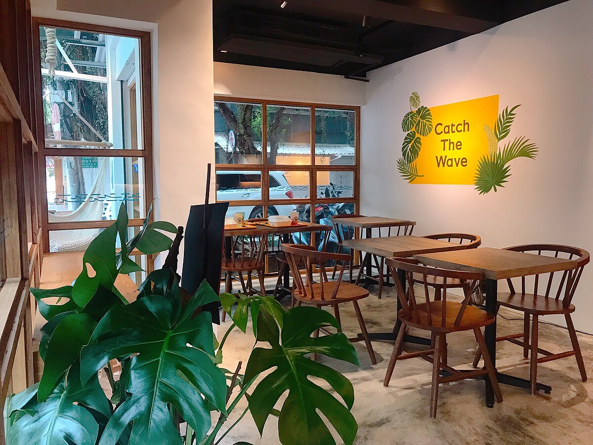 店內的裝潢風格更是讓人驚艷,一踏入店內帶有度假風的氣息,非常適合好好放鬆!魔鬼藏在細節裡,偷口夏威夷餐盒店內真的是臥虎藏龍,從LOGO設計、牆面、窗戶上的圖案、店內所有的圖案花樣,完全是採用手繪的方式呈現,非常具有溫度。