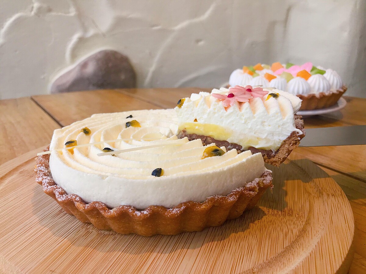 以簡單清爽的黃色為基底,光是視覺就很消暑~入口時感受百香果奶霜的微酸口感,品嘗到百香果奶油餡的爽口滋味,搭配上底下酥脆的塔皮!這款推薦給不喜歡太甜的朋友們~