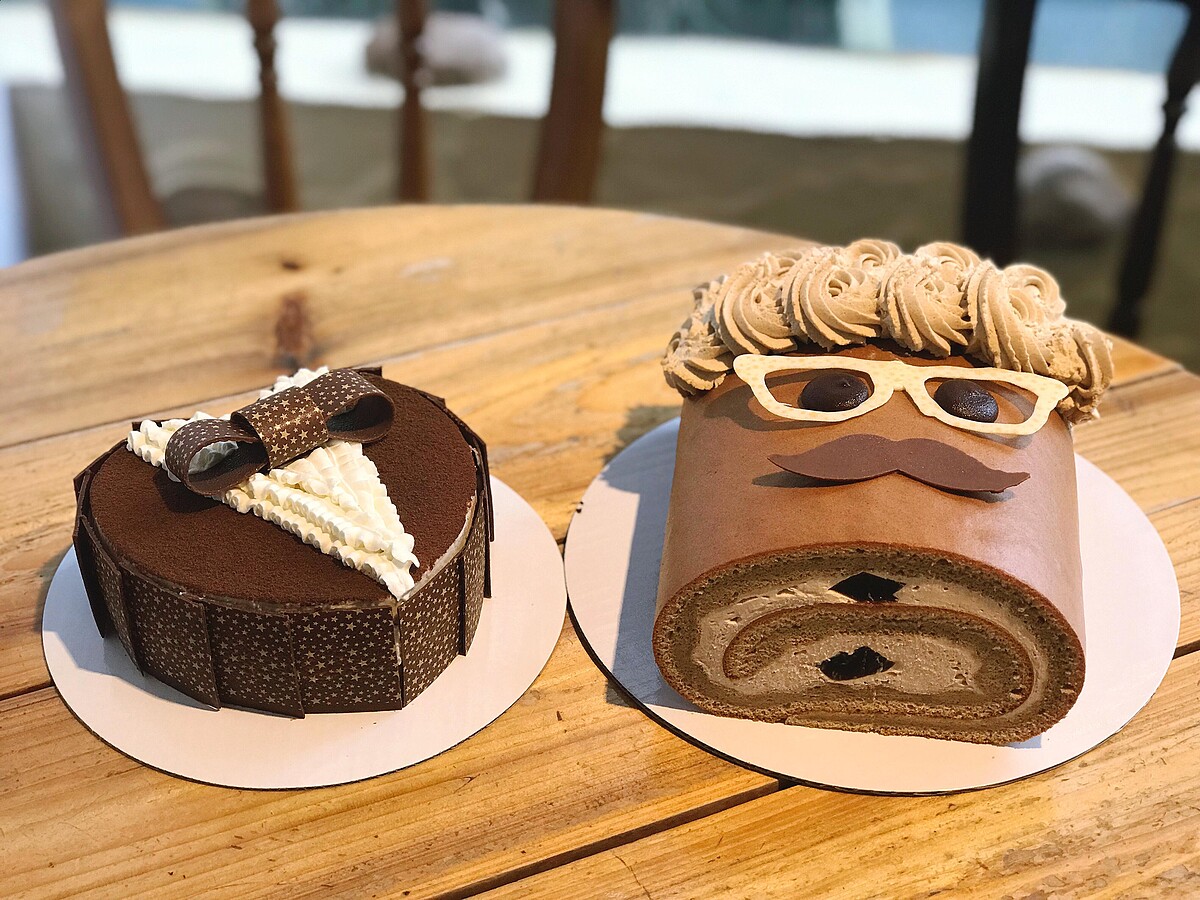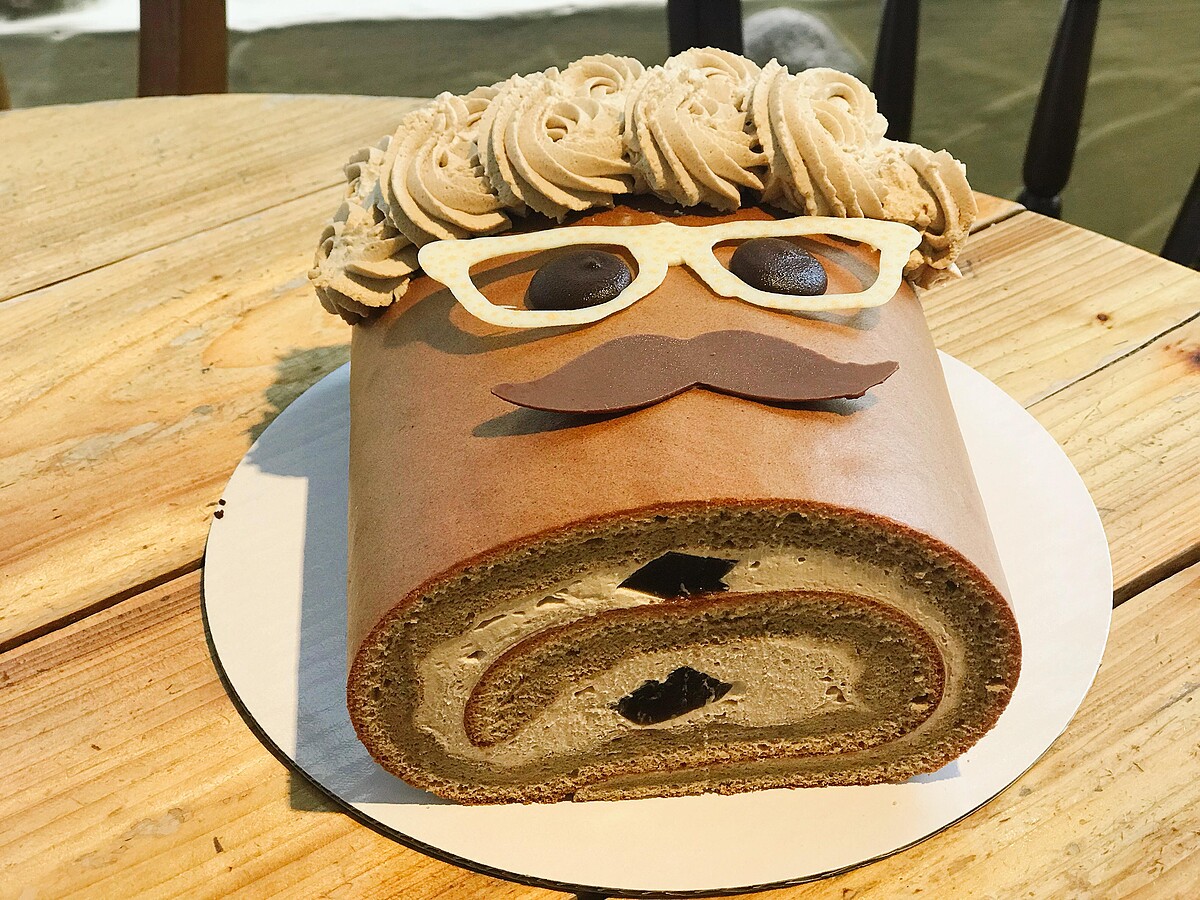將蛋糕化身幽默又帶有俏皮感的爸爸,實在是太可愛啦!「一杯咖啡,是爸爸每天工作的日常。」特別選用台南東山咖啡加入清爽的北海道奶霜中,呈現出濃郁的拿鐵香味與冰涼的咖啡凍完美結合。最讓人莞爾一笑的是完全是生乳捲的放大版,超可愛~