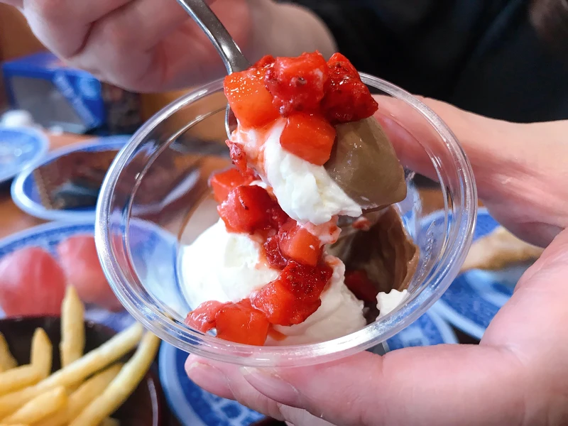 連小編都不知道的隱藏版吃法,將抹茶粉淋上抹茶冰淇淋立刻重現大阪道地的抹茶冰淇淋吃法,吃下口的瞬間抹茶粉帶有一些苦味更提升了抹茶冰淇淋的味道!喜愛抹茶的人一定要試試看~