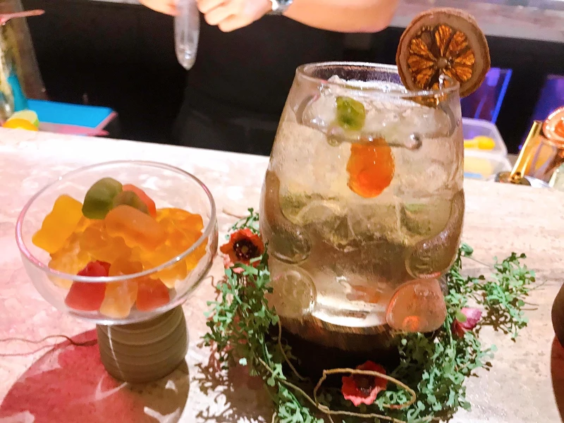 「遊樂園」使用牛奶糖浸泡的燒酒,裡面加入跳跳糖、爆米花與焦糖,適合童心未泯的少女們。