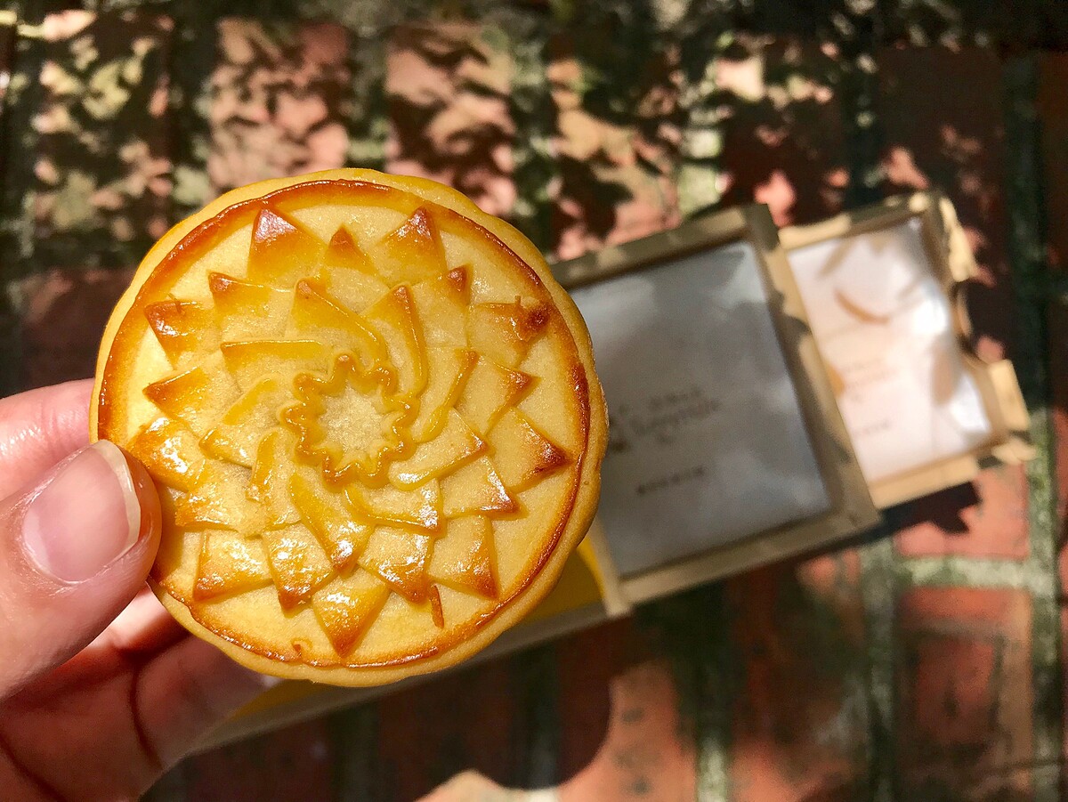 搭配滑順的奶黃,入口後酸甜間品嚐的到淡淡的鹹香感,外觀設計別具意義的以「鳳梨花」花紋呈現,在台灣過年過節有著吉利的象徵,鳳梨花於月餅上綻開的意象,勾勒出土產鳳梨在台灣人心中的形象。