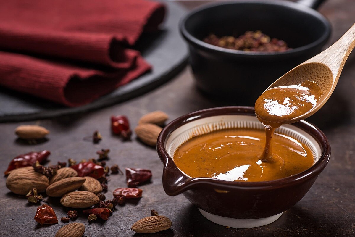 詹姆士獨家研發配方,健康取向,將傳統麻醬常用的花生改以「杏仁果」為主、白芝麻為輔,整罐堅果含量高達80%,整罐都是堅果研磨出來的天然健康油脂。黃金雙辣組合,嚴選川菜大師最愛「二荊條」香氣,與辣度代表「朝天椒」,調出最適合台灣人的香辣比例。