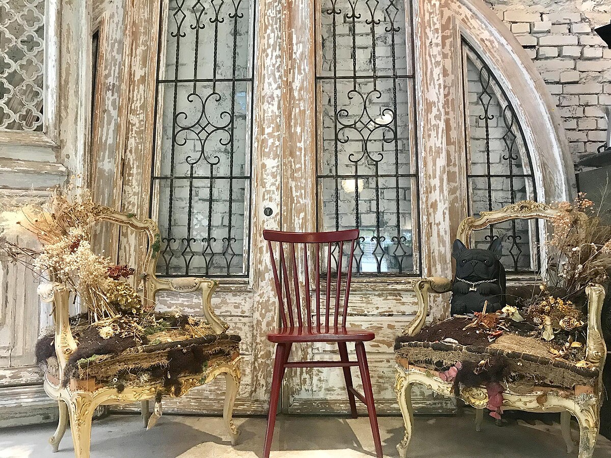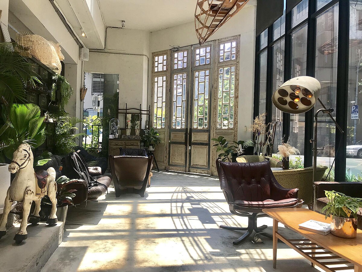 舒服氣息更加奢華亮麗,推開門的瞬間,空間十分明亮,陽光輕輕灑下錯落的光影、隨處可見的綠意妝點,整間店面充滿各式古件老傢俱,每樣都空間巧妙的結合。