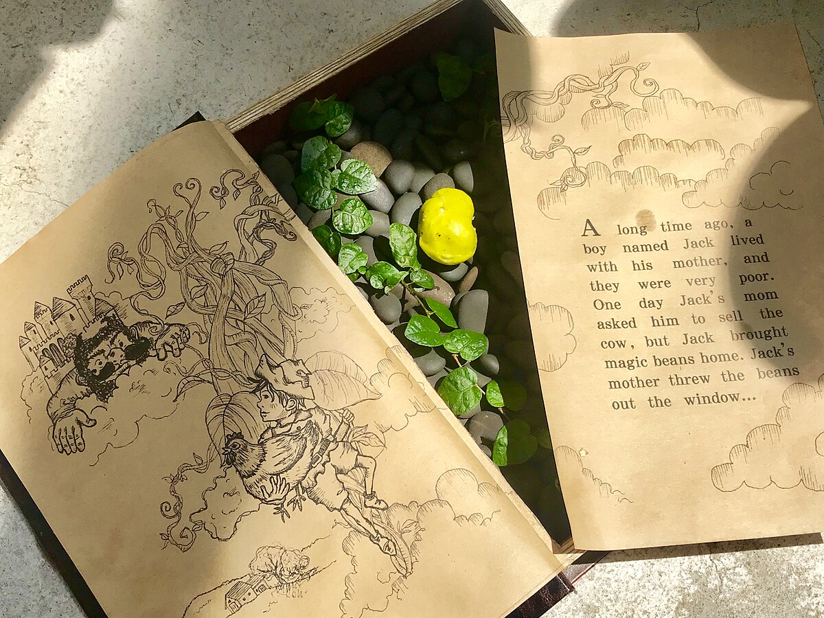 故事的開始是傑克家裡十分清寒,媽媽叫他去用牛換取食物,但傑克把牛卻換成了幾顆看似不起眼的神奇豆子,媽媽看到非常生氣就將豆子仍出窗外!