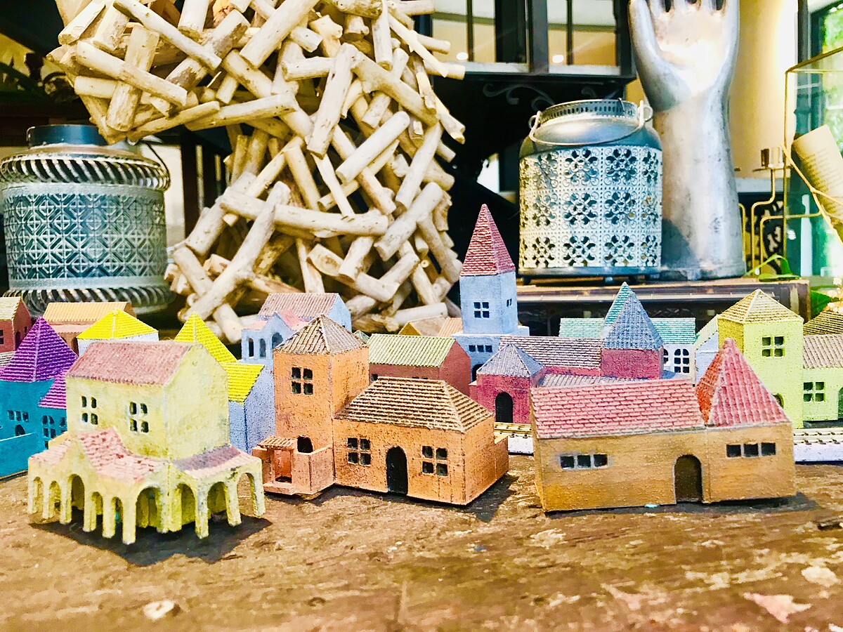 店內目前與方文山老師合作,方文山老師的團隊製作出各式五顏六色的小房子,從牆壁上的畫作到小房子的模型,充滿整個舒服氣息,還推出了期間限定的甜點「精靈村莊」!