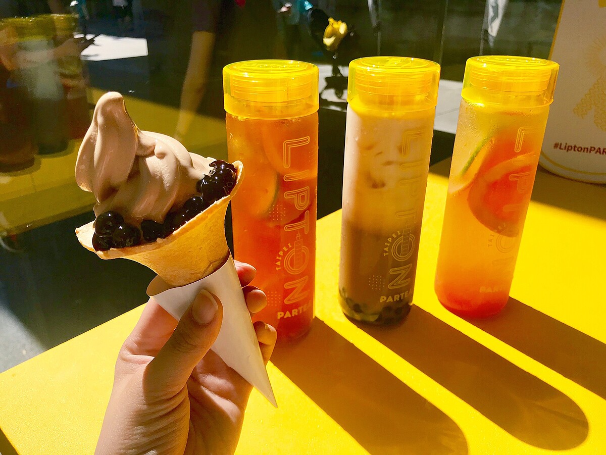 這次立頓終於在台灣開設快閃實體店面「立頓玩茶鋪Lipton PARTEA」,這次不用飛日本也喝的到。快閃店內販售台灣限定版3款招牌調茶,店內採用台灣在地新鮮水果:屏東檸檬、台南關廟鳳梨、台南芒果、以及南投埔里百香果。還可以依照大家的喜好自由選擇茶底、水果、配料,創造出屬於自己的夏日消暑飲品!這次連外面的隨身瓶也是台灣限定版,這次最大的亮點就是限量的「立頓珍珠奶茶霜淇淋」,搭配Q彈的珍珠,一定要吃到!