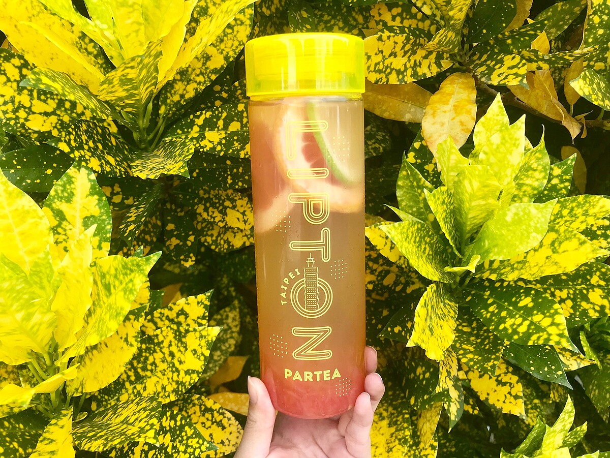 以立頓黃牌紅茶為茶底,加入當季新鮮水果切片蘋果、柳丁、檸檬、鳳梨、百香果,口感酸甜適宜,超適合在炎熱的夏天裡喝一瓶!