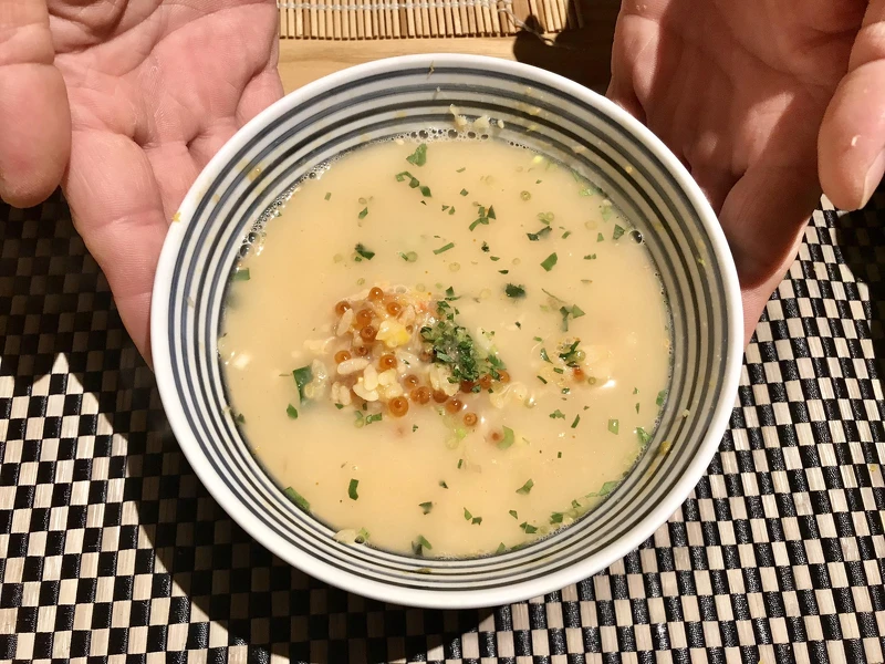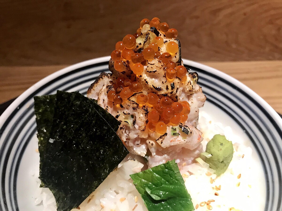 這款台灣獨賣,加入魚卵、天使紅蝦、黑海松貝、魷魚、鮪魚……等等。再用炙燒的方式讓生魚片稍微有熟度,不敢嘗試生魚片的朋友們也可以點選這道好好品嘗大海的味道!吃到一半之後加入高湯享用又是另一番風味~