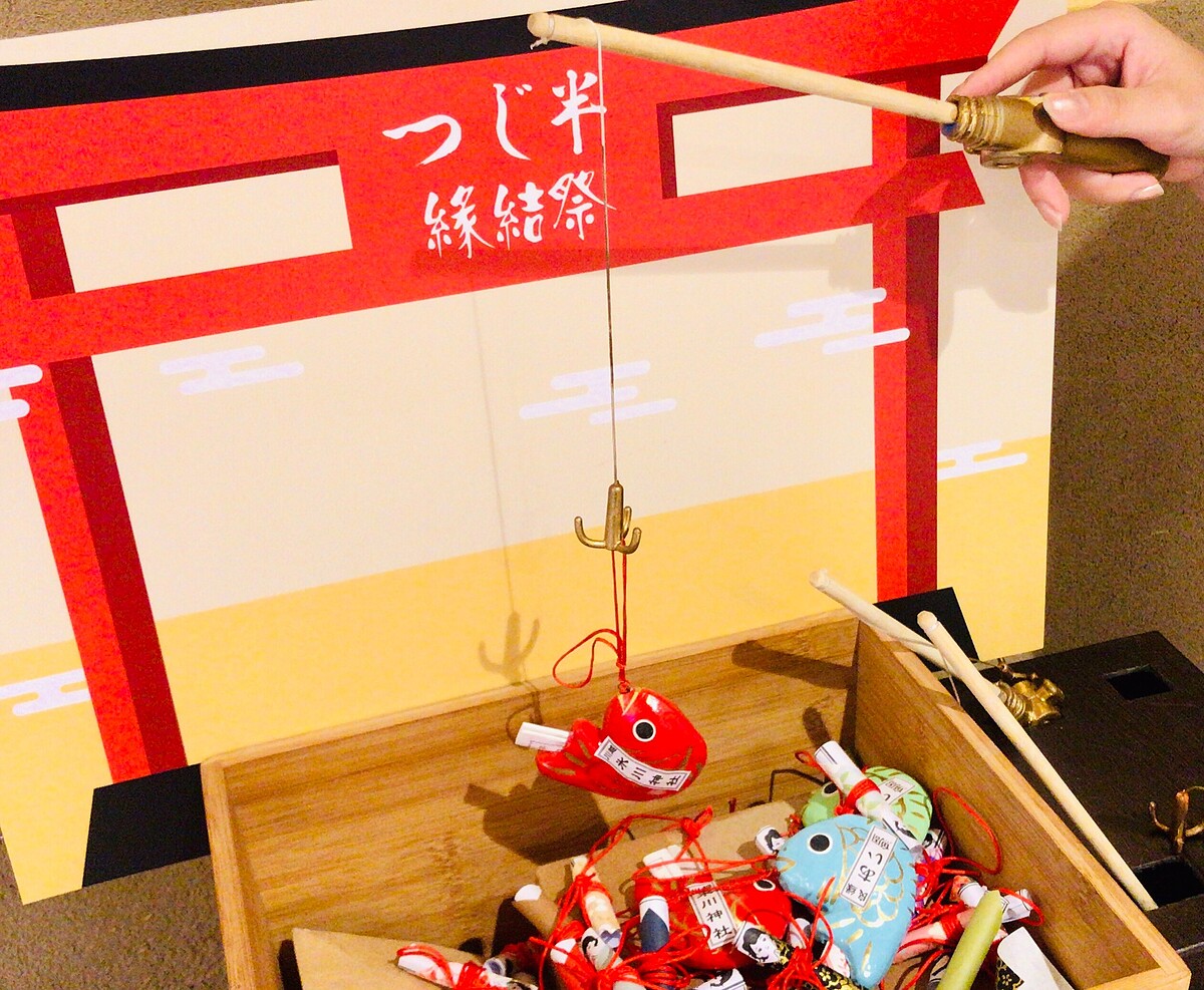 這次還有一個亮點是日本橋海鮮丼つじ半(Tsujihan)特別從日本空運來台在日本相當知名的川越冰川緣結神社-限量鯛魚愛籤(あい鯛)及一年平安鯛,「鯛」在日本文化中更代表著「慶賀」。現場更呈現出1600年歷史的川越冰川神社釣戀愛詩籤的場景,讓大家都能「釣」到屬於自己的愛籤!