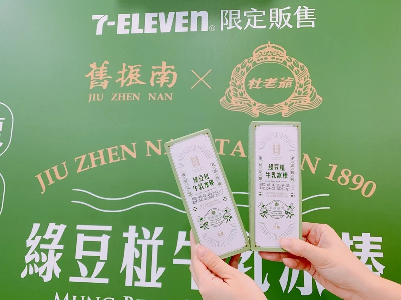 百年老店「舊振南」這回特別與「杜老爺」攜手合作,推出限定款「舊振南綠豆椪牛乳冰棒」,將招牌綠豆沙餡融合黑糖風味寒天,復古懷舊的滋味令人難以抗拒。