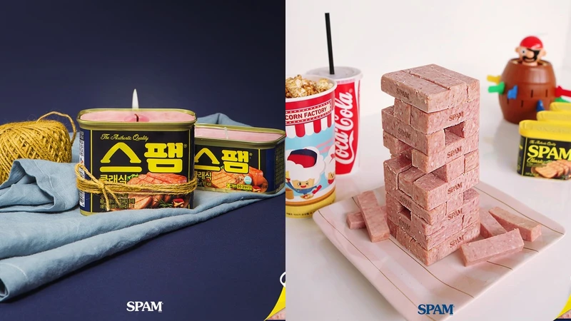 韓國SPAM除了午餐肉以外,還官網還分享了各種午餐肉口味的系列商品,像是蠟燭、甚至還有午餐肉的疊疊樂,韓國人的生活真的是無午餐肉不歡阿!