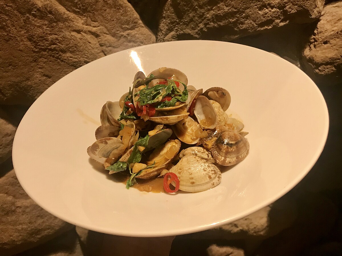 嚴選每日空運來台海瓜子以及台灣本土養殖蛤蜊,以大火快炒鎖住鮮味,每一口都吃的到海味,肉質鮮嫩柔軟,搭配辣椒、大蒜加上九層塔的香氣嗆炒,絕對是下酒必備!