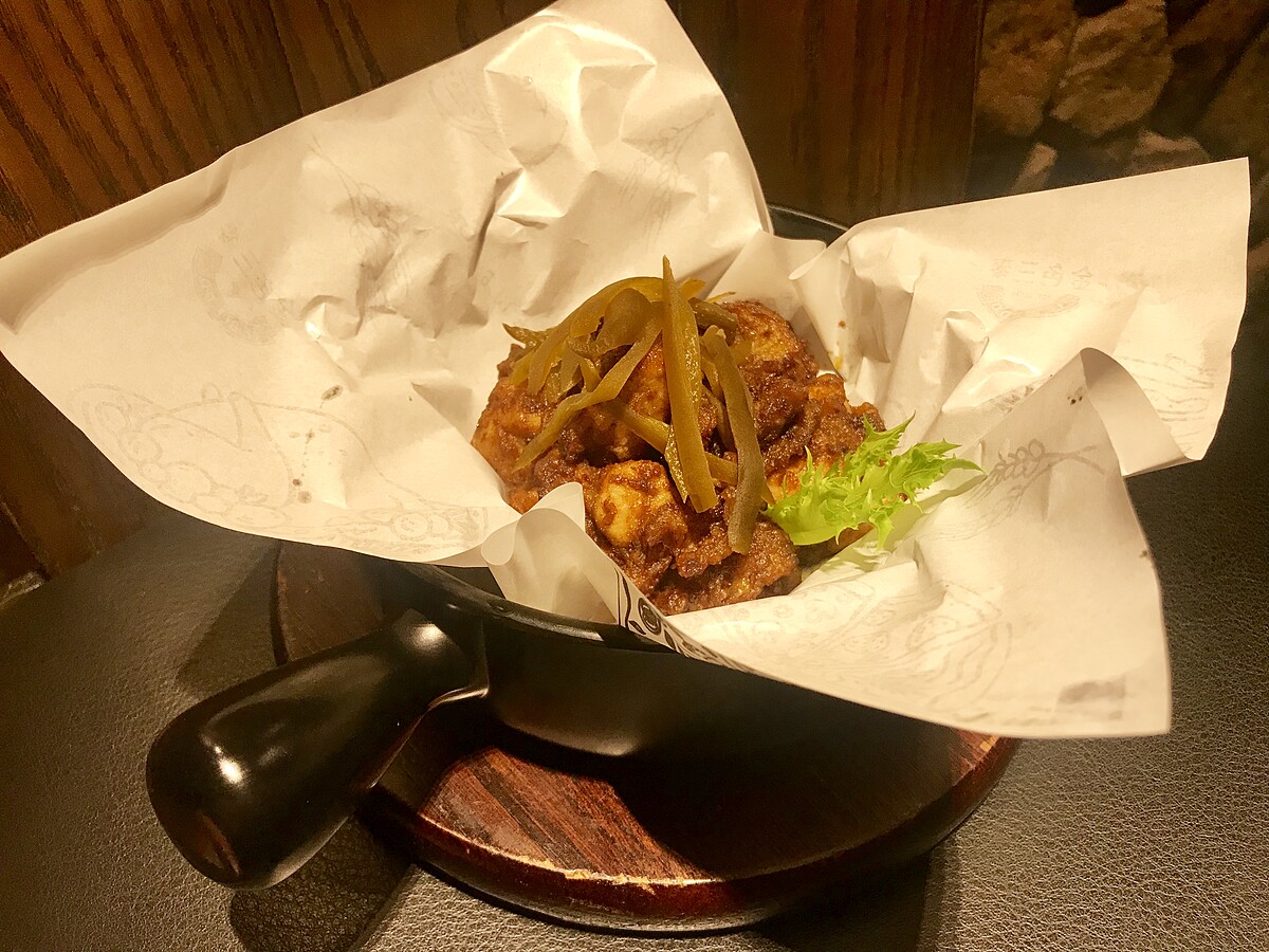 靈感來自40年代經典好菜,以台式料理非常使用的沙茶為主調製而成的醬汁,一上桌就可感受開胃的沙茶撲鼻香,入口後微酸的滋味與傳統沙茶取得巧妙的平衡,點綴上剝皮辣椒為味覺感動再提升。