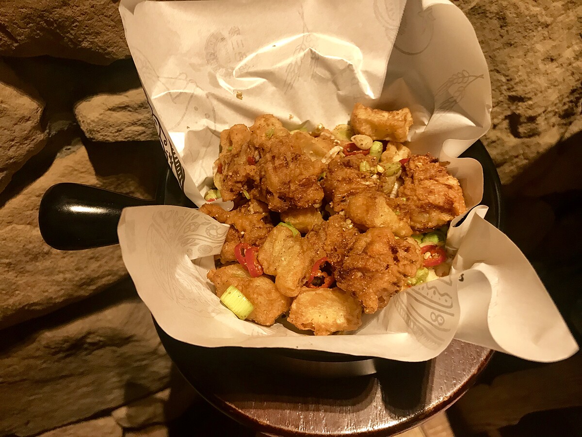 台式下酒菜精髓莫過於酥炸龍珠&杏鮑菇,掌握最佳油炸時間以及溫度,逼出水氣,酥脆卻不失彈牙口感,讓人越吃越唰嘴。