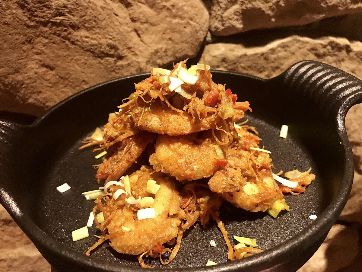 特別挑選75~80克的大小墨魚,因墨魚口感與料理呈現是最完美的的!運用先煎再炒的手法,將海鮮細細裹上滿滿的鹹蛋黃,入口感受蛋黃的金沙鹹香感,大口咬下還能感受到白蝦的鮮甜以及墨魚的Q彈口感。