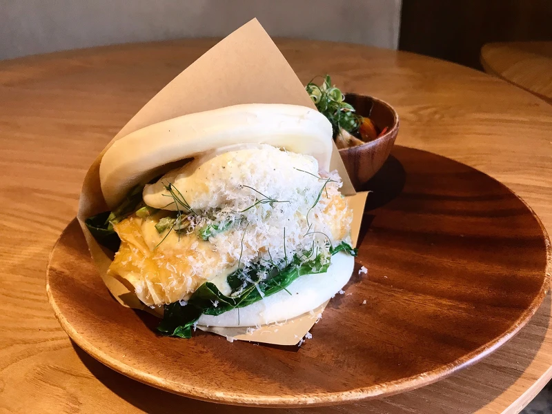如果夏天食慾不佳,想要來點蔬菜解膩的話,非常推薦這款~帶有香濃的起司香,將水波蛋切下去流出的蛋黃~實在是好療癒,吃起來有蔬菜的清爽以及淡雅的檸檬香氣,十分適合夏天享用,此款屬於蛋奶素,素食者也可以享用這款美味的刈包!這款是小編的私心款~