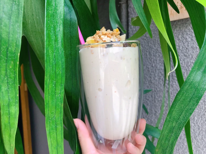 喝起來濃郁的香蕉風味,滑順的口感,在吃脆片的酥脆口感,層次多變~是小編的私心必點!