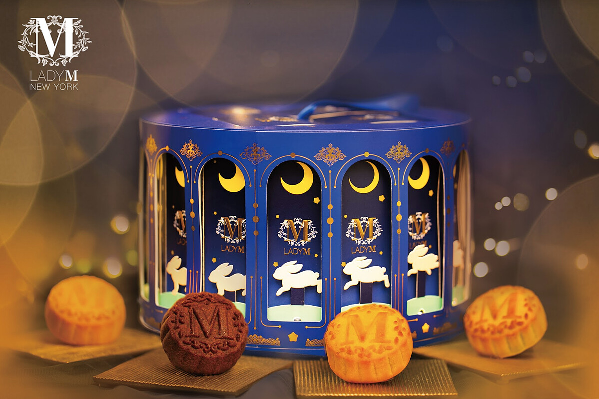 Lady M「舞夜嬉月」奶皇月餅禮盒於8/27至 9/13 台中新光店、台北旗艦店現場販售,售價2780元。
