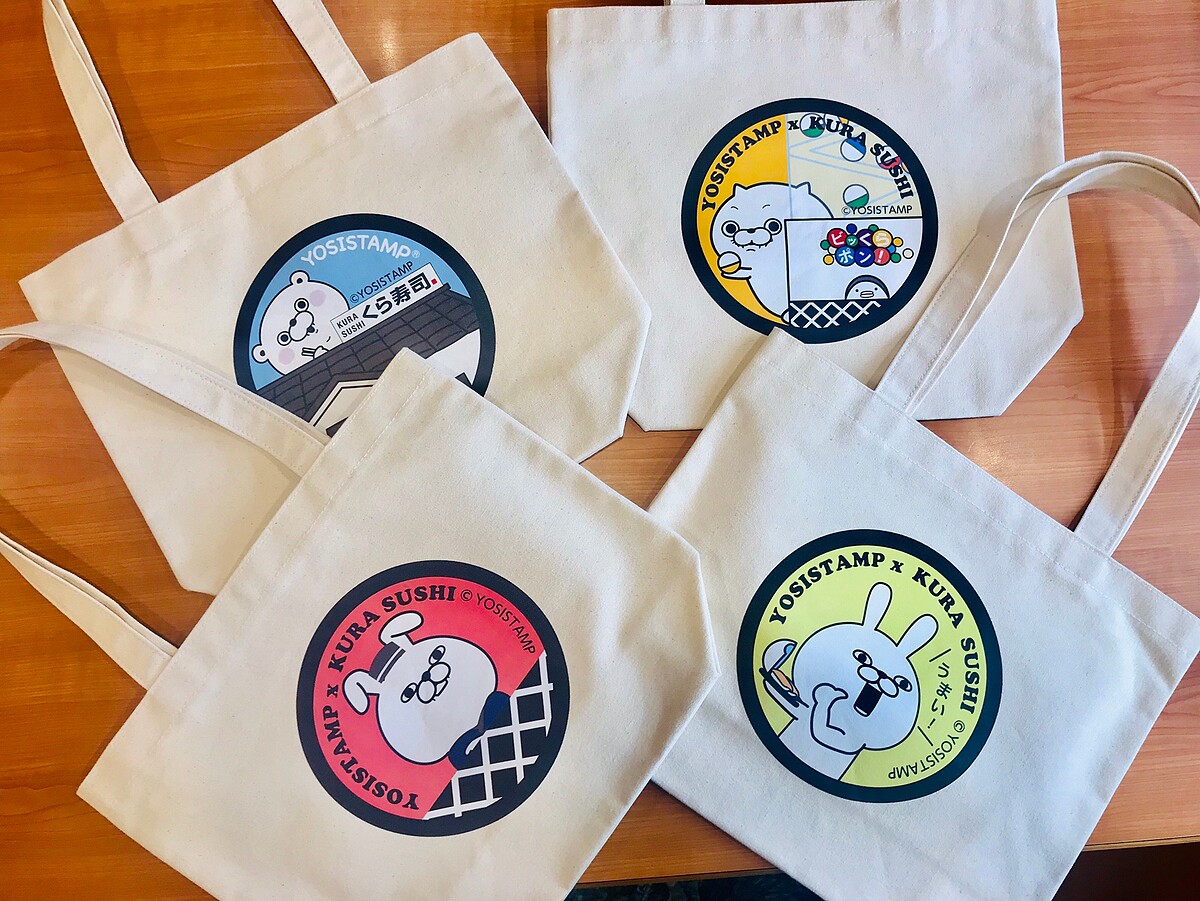 三峽學成店推出獨家YOSISTAMP限定款扭蛋,是超可愛的4款限定YOSISTAMP帆布托特包,外出時超方便,這些搞怪小動物們準備以超療癒搞怪的姿態萌翻全台藏壽司啦~