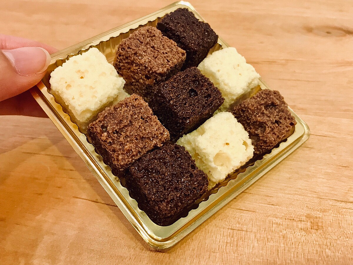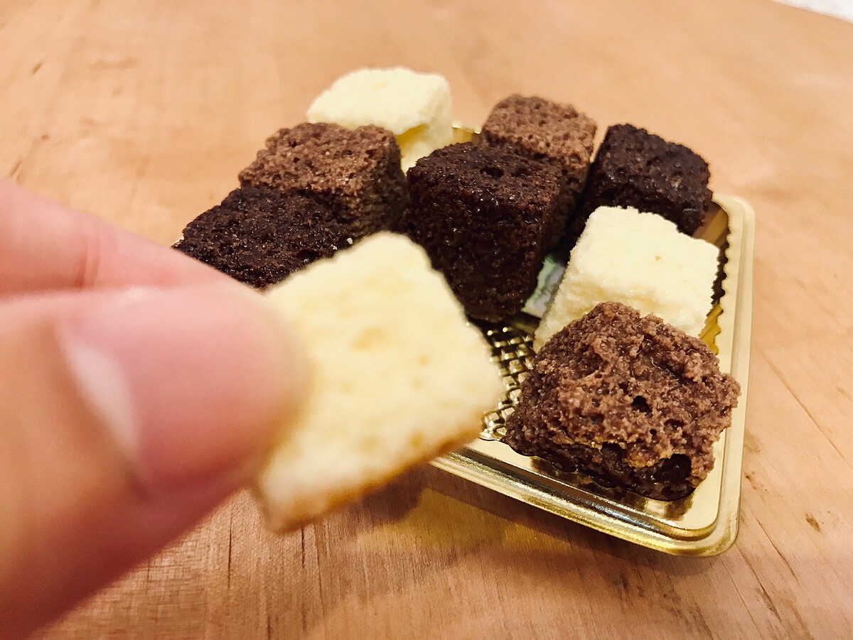 「石疊巧克力」外觀方方正正的模樣很療育,有三種口味黑巧克力、白巧克力、牛奶巧克力,每一口都充滿著蛋糕的香氣與濃郁的黑巧克力風味。輕脆、爽口,不甜膩。