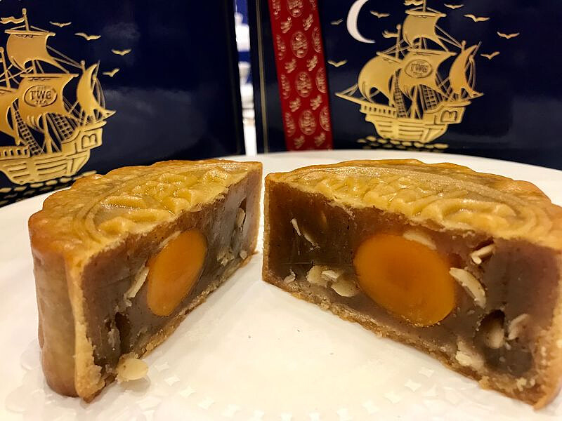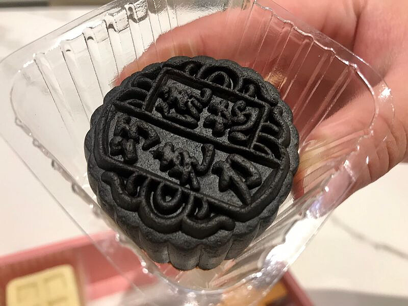 外觀看起來是非常傳統的月餅,但絕對是實力派的月餅選手,切開後裡面有一顆超大的蛋黃,與烏豆沙餡蛋黃完美搭配!愛吃蛋黃的人不能錯過這款~
