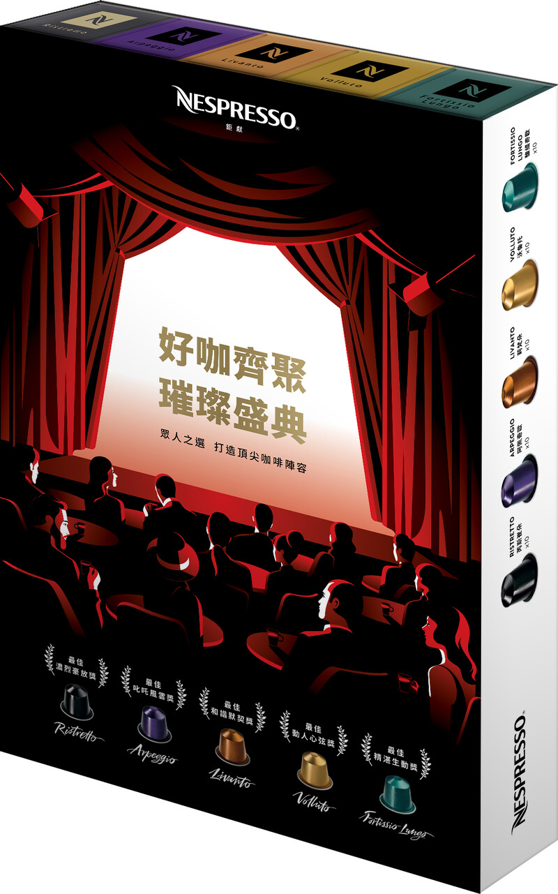 這次集結了全球Nespresso愛好者從28款經典咖啡中挑選出最受歡迎5款咖啡,分別是:芮斯崔朵Ristretto、阿佩奇歐Arpeggio、莉梵朵Livanto、沃魯托Volluto,以及馥緹奇歐Fortissio Lungo,這5款中是否有大家喜歡的風味呢?