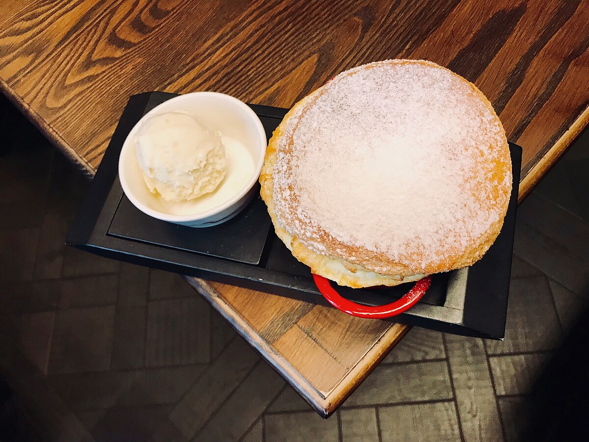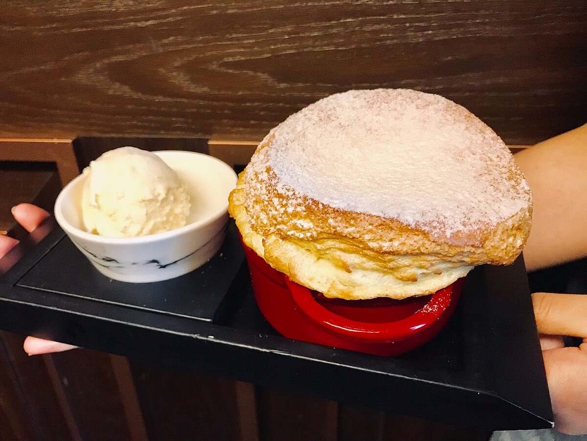 舒芙蕾微酥的表皮,切開後的散發出雞蛋奶香味,入口即化的超綿密口感,配上檸檬整體甜而不膩,舒服雷控吃起來~