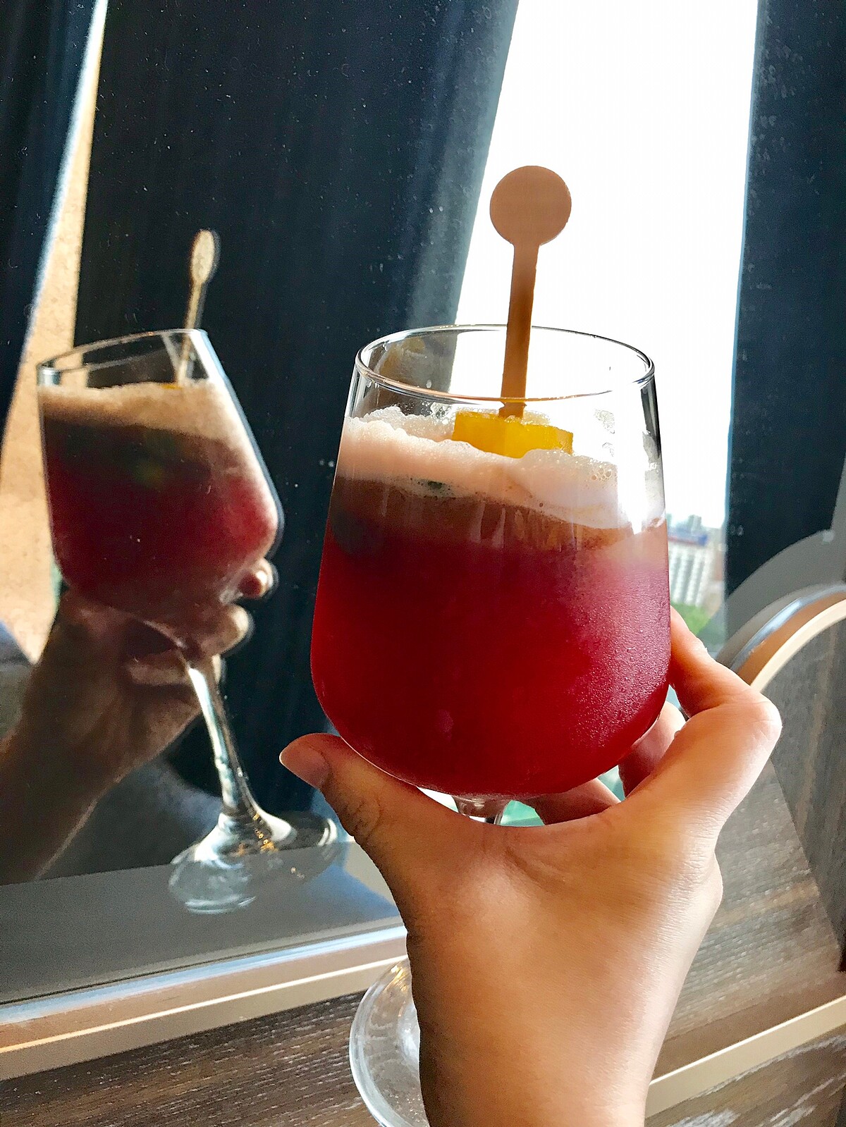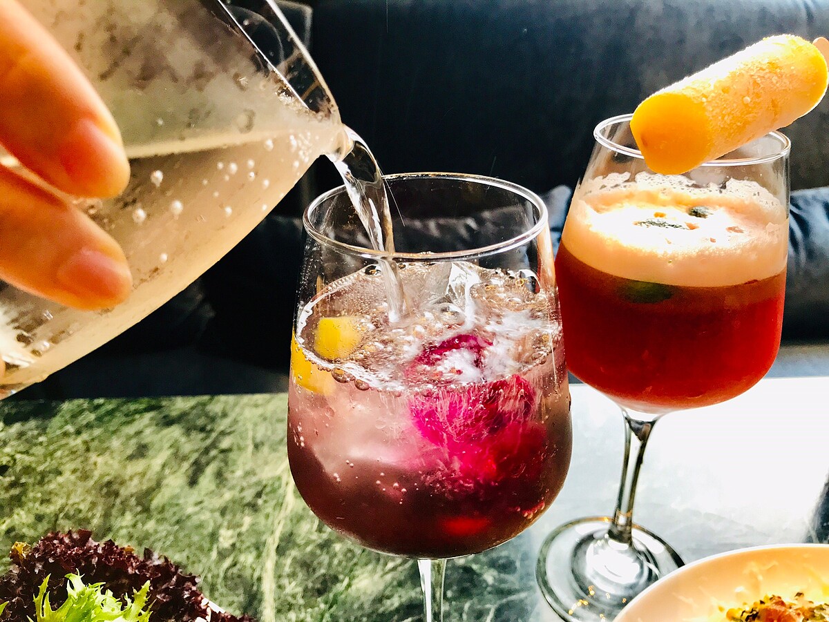以洛神蘋果醬製作,再將新鮮水果製成冰塊,晶瑩剔透的果實晶球真的是太美了!品嘗起來濃郁的洛神花香氣,配上新鮮水果超搭配~