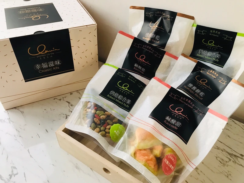 一次滿足你想吃的慾望!點心禮盒內共有六款不同的點心分別是鹹酸甜果乾、古早味餅乾、堅果系列,不論追劇、下午想來點小點心享用時一小包超方便~