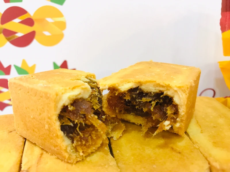 餅皮表層金黃色,外皮酥而細緻,內餡包裹著土鳳梨的天然纖維,鳳梨果肉微酸微甜,搭配外皮酥脆中散發的奶香味,不論送禮自用兩相宜~