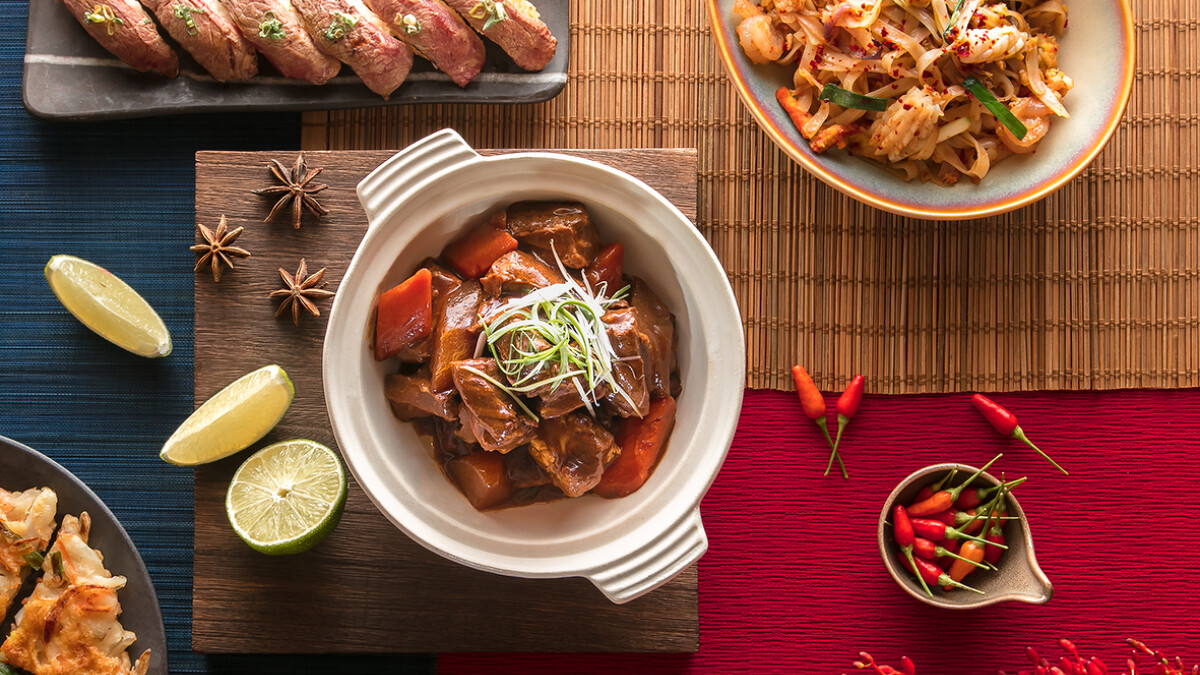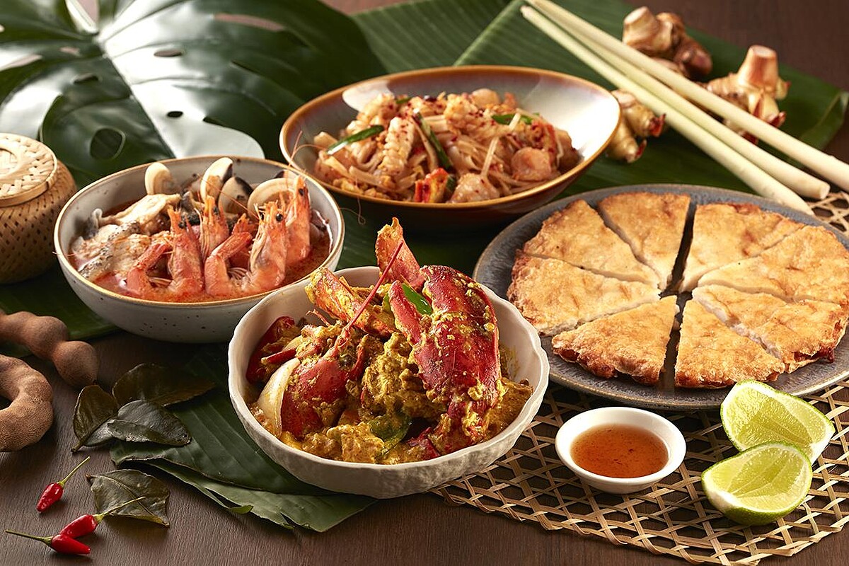 十二廚這回取「SUKHOTHAI」之泰味精髓,道地呈現「酸辣海鮮湯」以泰式香料熬製蝦湯,加入鮮蝦、鮮魚、花枝、蛤蠣等海鮮,辛香襯托海味的鮮甜,酸辣滋味溫暖入秋脾胃;於鐵板區現點現做的國民小吃「泰式炒河粉」;清爽開胃的「青木瓜沙拉」以傳統擂缽搗拌青木瓜絲、蝦米、魚露等,酸辣入味帶有海味鹹香,撒上香脆花生增添食感。以及泰菜必點「月亮蝦餅」。