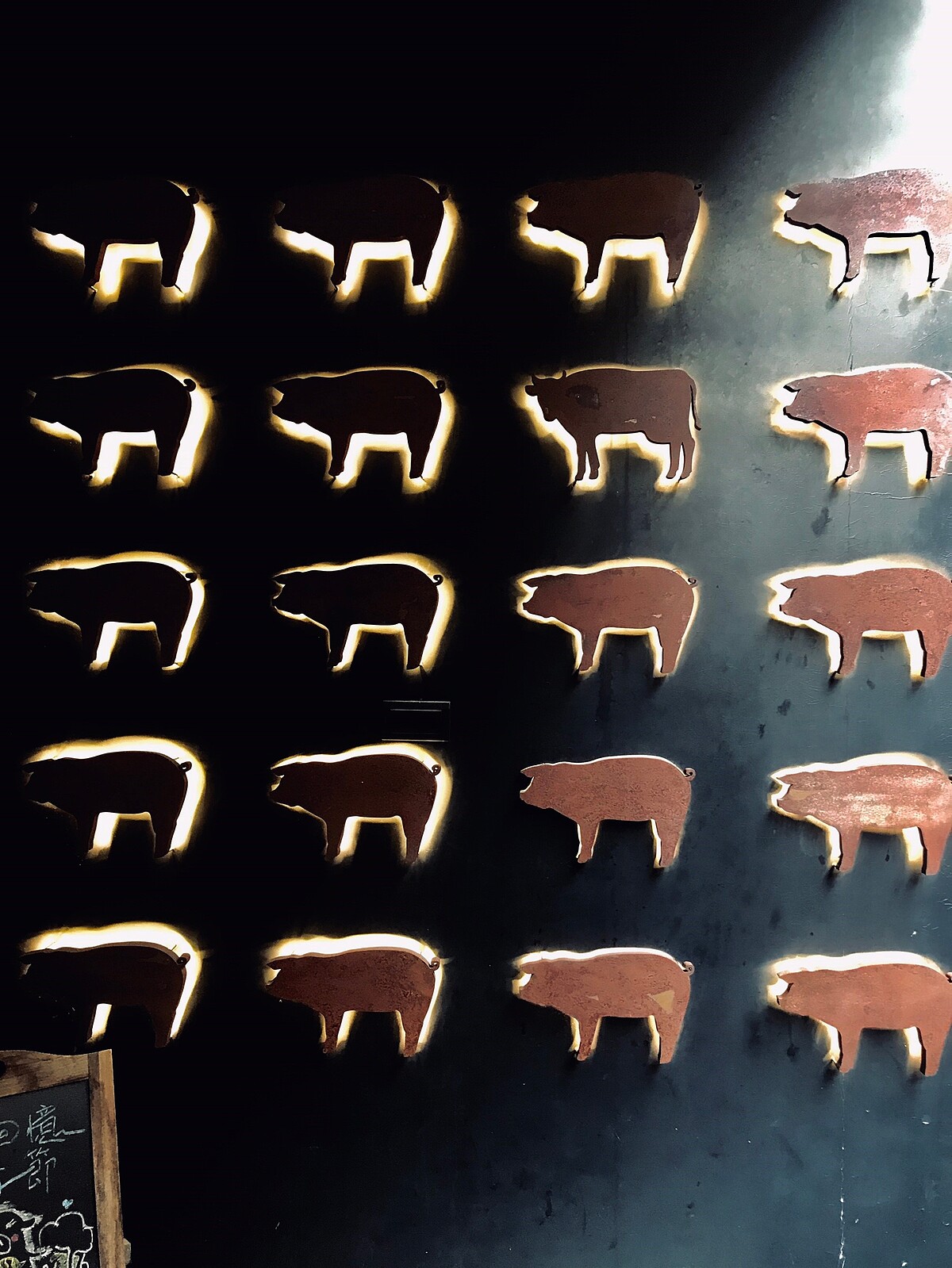 旁邊外牆的剪影看起來只有豬對吧?其實隱藏著一隻牛~來挑戰大家的眼力吧!