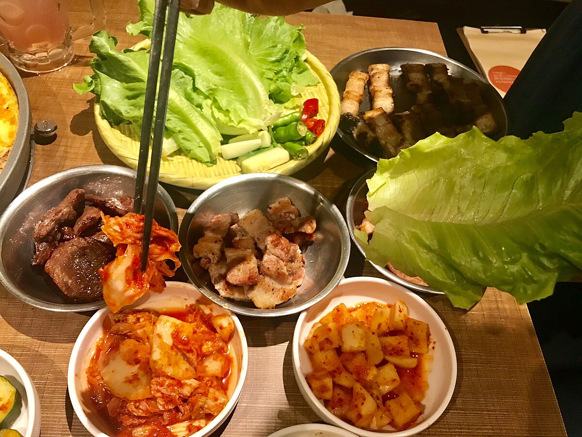 還可以搭配生菜將燒肉、小菜一起包入也超解膩!