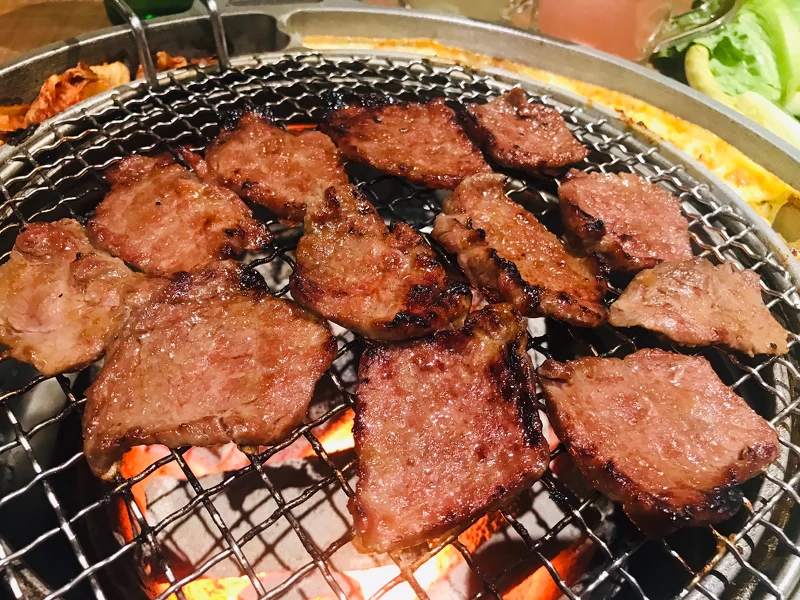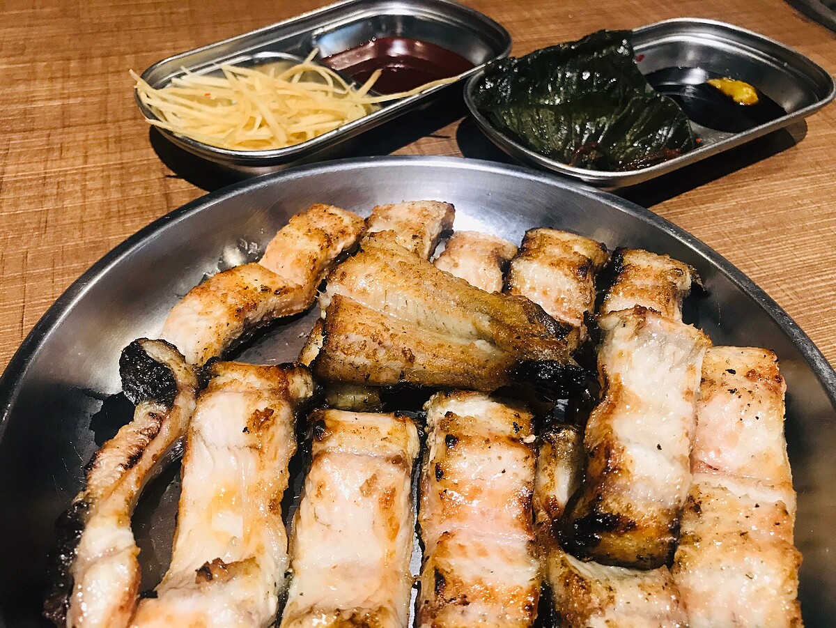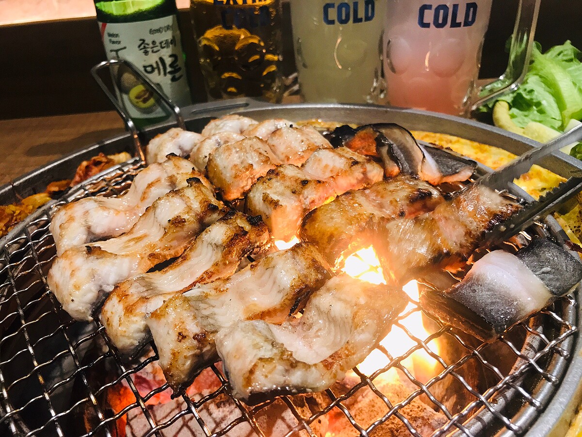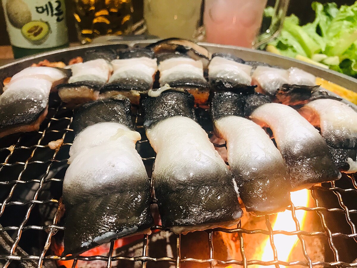 台灣的韓式燒肉較少見到生烤鰻魚,這樣的烤法只有在韓國比較常見,鰻魚肉質軟嫩!