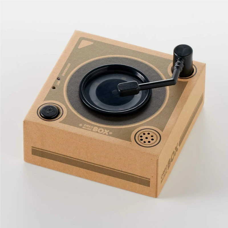 「OREO黑膠唱片機」內建五首歌曲,最特別的是會依照不同餅乾大小重量唱出不一樣的曲目,可以一邊放一邊吃,等音樂播完了也剛好都吃光啦~
