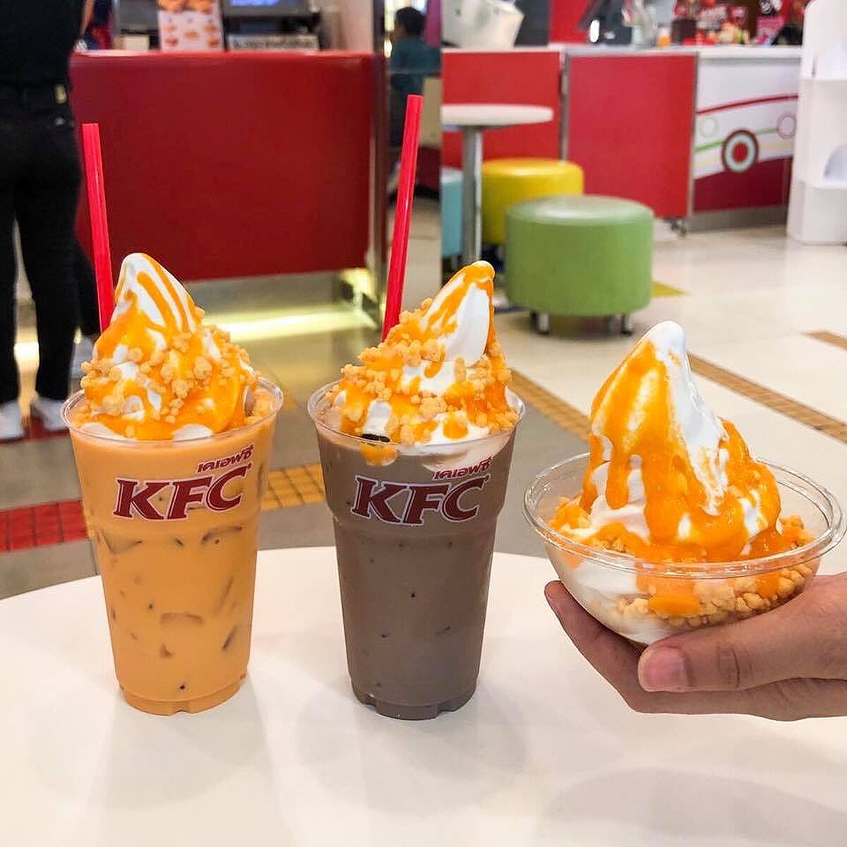 感覺是鹹鹹甜甜的滋味,各位奶茶控敢嘗試嗎?只能說泰國肯德基真的太狂了~