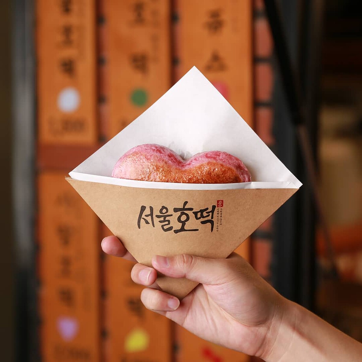 最近爆紅的糖餅店「서울호떡(首爾糖餅)」推出一款全新造型粉紅愛心糖餅,吸引大批網友打卡朝聖!