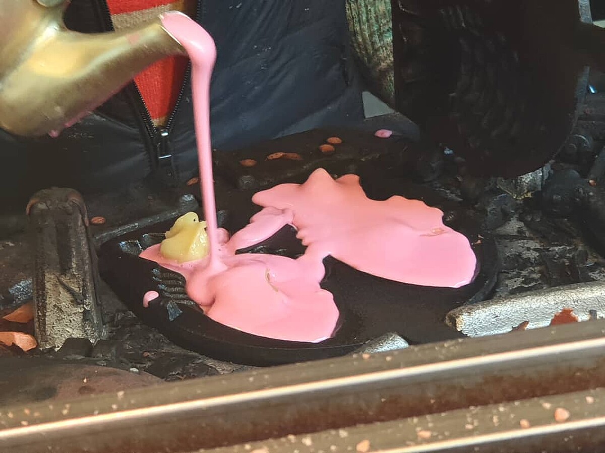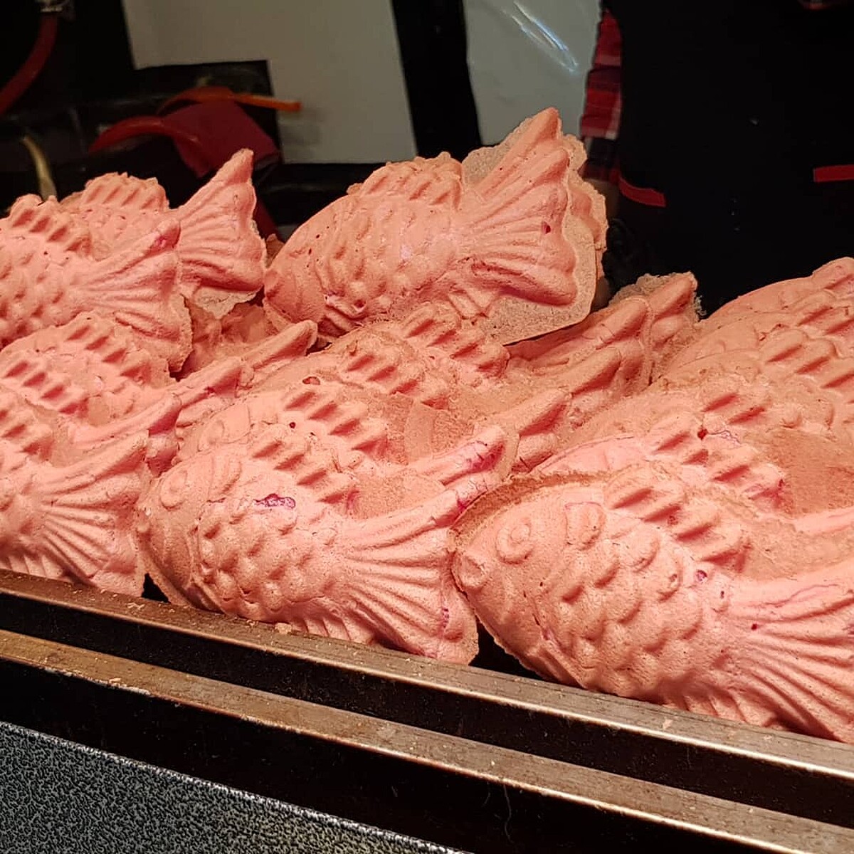 一般鯽魚餅口味通常是以紅豆餡、奶油餡為主,有點像是日本鯛魚燒的感覺,但這款超人氣的粉紅色的鯽魚餅的餅皮使用紫薯製成,內餡則是蕃薯餡,光是粉嫩的外表就超吸引人!