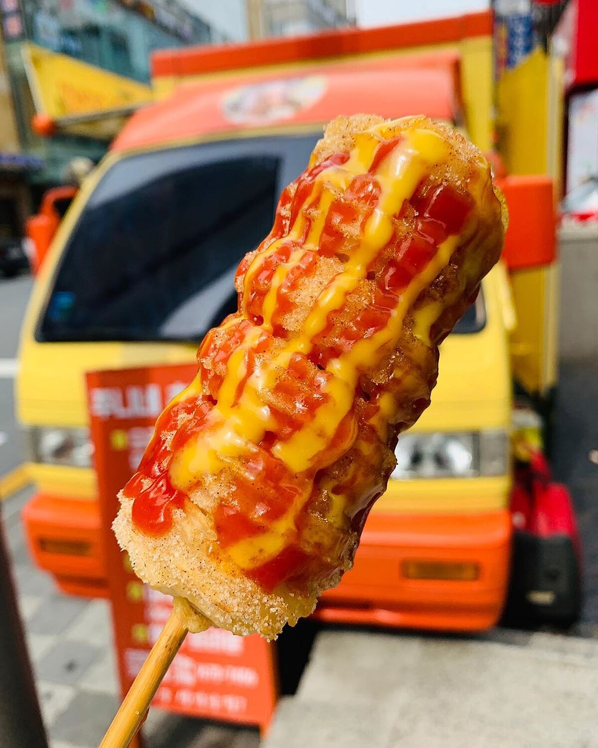 這次全新吃法是將吉拿棒把熱狗捲起來、接著油炸、最後淋上醬汁,一推出後大受好評,時常大排長龍,在SNS被瘋狂打卡!