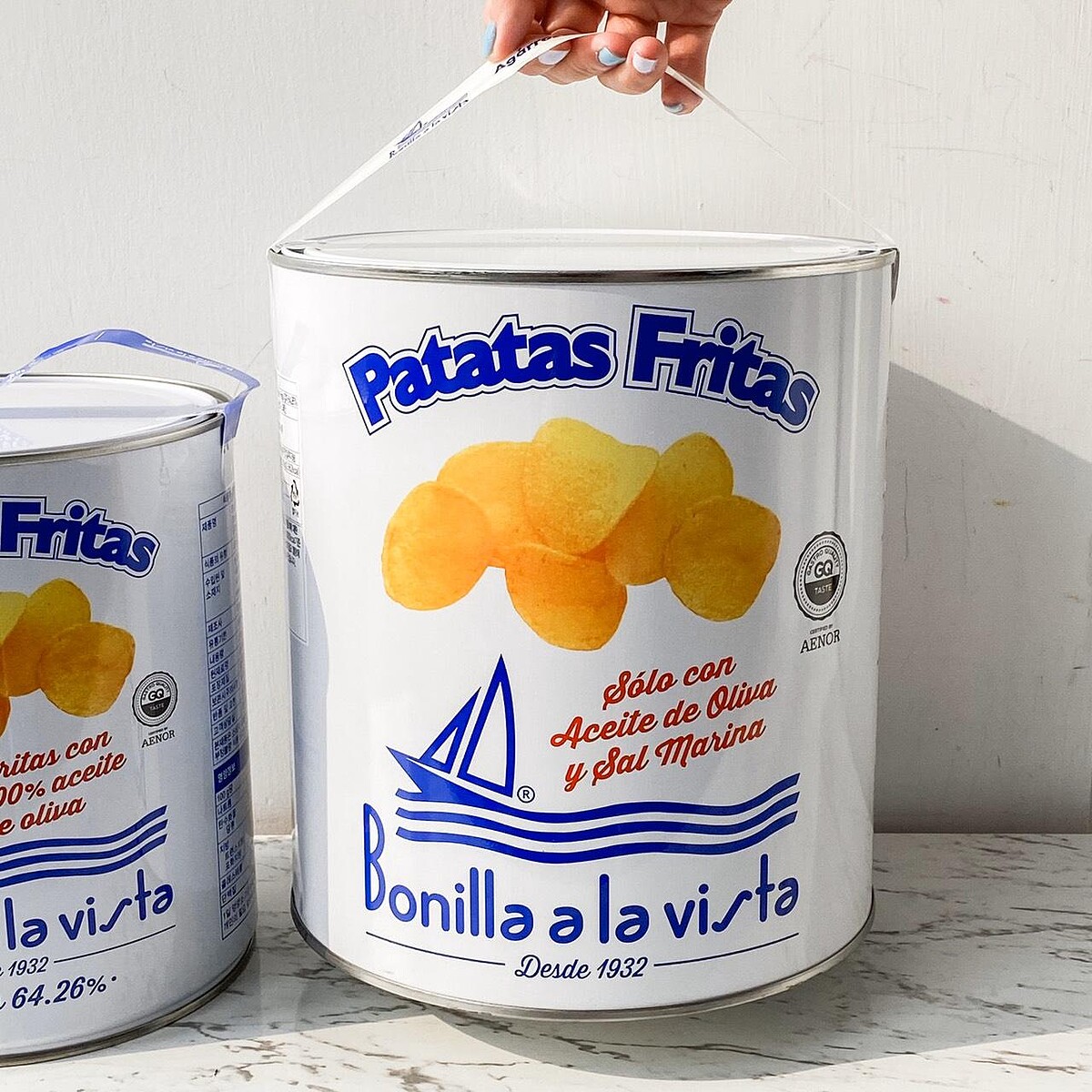Bonilla a la Vista的洋芋片外包裝有別以往使用袋裝,外觀看起來完全就像是一個油漆桶,打開居然是整桶的洋芋片,真的超可愛!