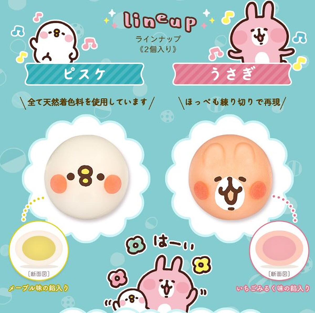 日本萬代食玩公司(BANDAI CANDY)以「可以吃的吉祥物」為靈感發想製成食べマス和菓子,繼先前已經推出過史努比、哆啦A夢、小熊維尼、三眼怪後,現在再與日本超商LAWSON聯手,推出少女都無法招架的「卡娜赫拉和菓子」,「P助」會有楓糖香味;「粉紅兔兔」則是草莓牛奶味,兩款都萌到捨不得吃下肚!