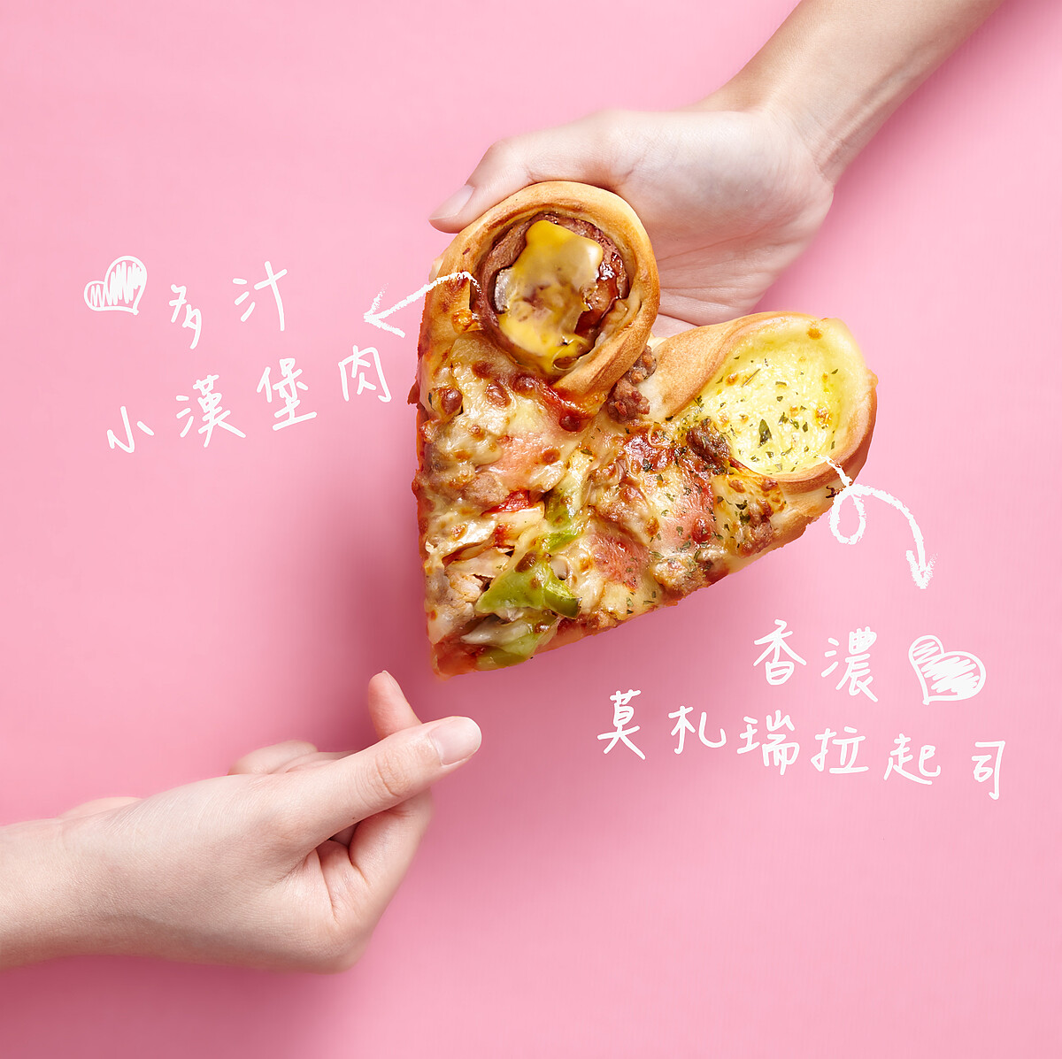 M編覺得最近若需要舉辦開學同樂會、閨蜜八卦聚會、或想跟男友PO照放閃又缺點“小道具”…都適合來一組必勝客「心花漾起司漢堡餅皮」(如果有曖昧對象,一定要想辦法抓兩片愛心餅皮找他合照,藉美食刷熱愛情)。以前聚會時,總會有人想吃漢堡、有人想吃比薩…這時候,來一盤「心花漾起司漢堡餅皮」所有問題通通解決,皆大歡喜。下一餐,決定就是它了!
