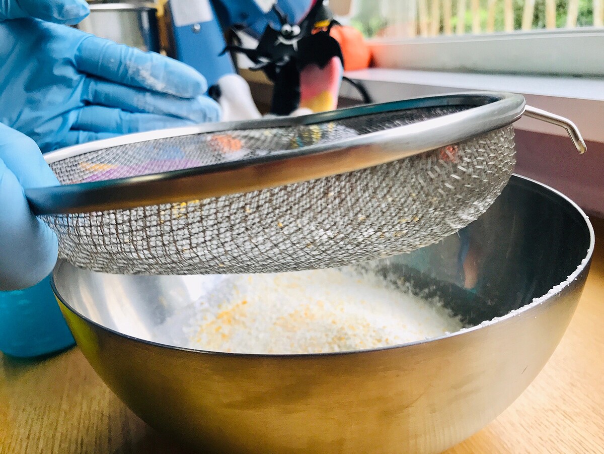 再將麵粉、南瓜粉使用網子過塞
