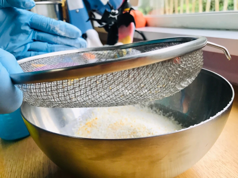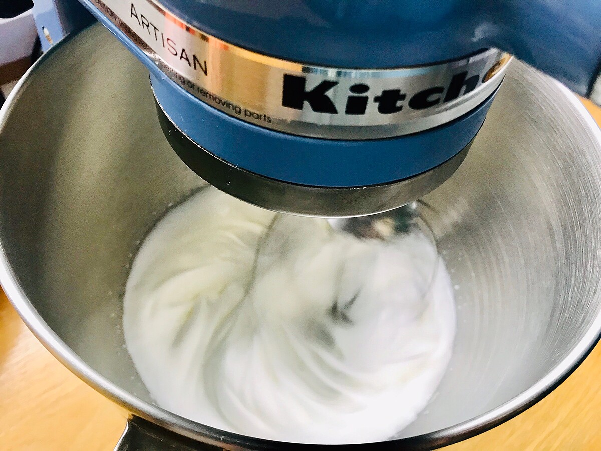 將蛋白用機器打蛋白霜,過程再加入些許糖!