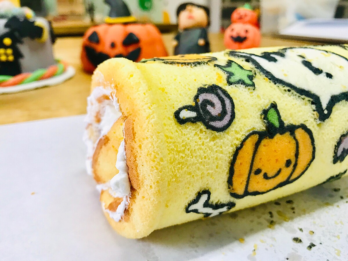 超萌的彩繪萬聖生乳捲就完成啦~