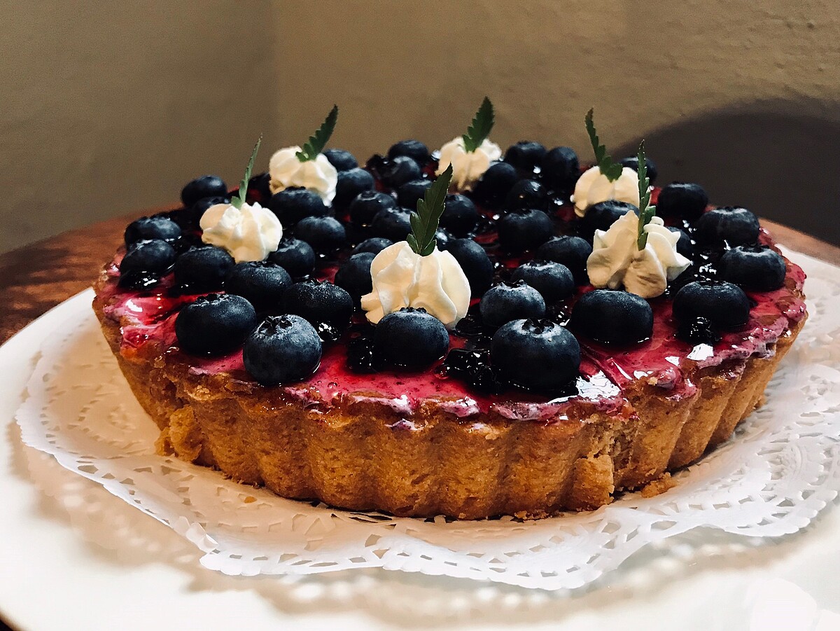 甘甜可口的新鮮藍莓果粒與偏酸的冷凍藍莓,營造出獨特的莓果風味,搭配巧克力泡芙蛋糕與藍莓卡士達奶油餡,層次分明,清爽不甜膩。