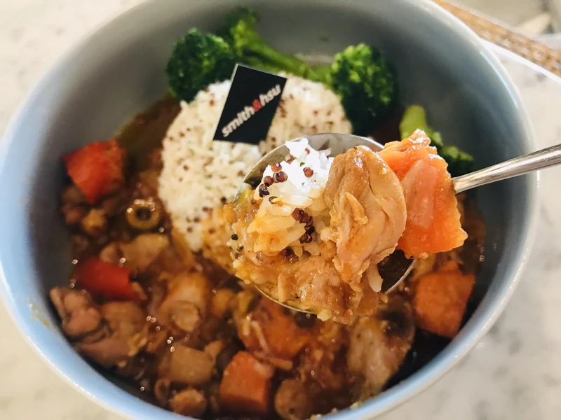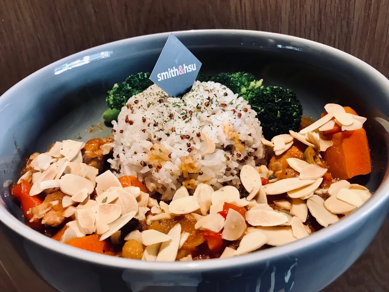 一入口感受到異國風情的辛香料風味,還有一大亮點就是加入了葡萄乾,更增添酸甜的口感! 最後在灑上杏仁片讓口感更加豐富,帶點堅果脆感與香氣,香濃醬汁搭配藜麥飯,減肥也能安心吃,整體濃郁豐富香氣四溢,滿滿異國風情、繽紛料多非常豐富!